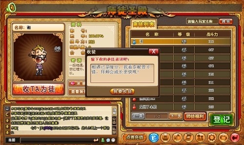 福利五:徒弟入师门时等级越低,出师时师傅的奖励越好。
