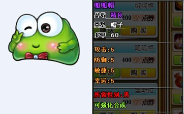 弹弹堂3装备包括武器、衣服、帽子、眼镜、饰品,可用于增加角色附加属性,其中武器、衣服、帽子可进行强化,合成、镶嵌操作,眼镜可进行合成,饰品可进行合成、熔炼;一系列操作有利于增加装备属性提升角色战斗力。
