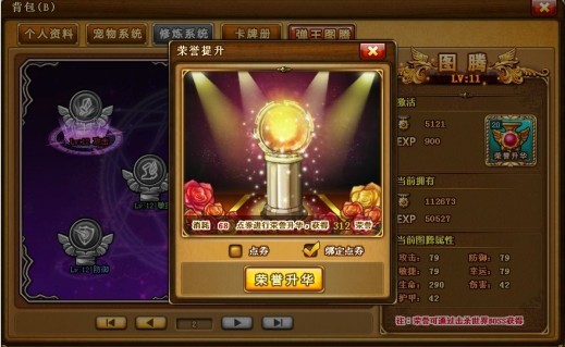 弹王图腾可以通过购买荣誉升华来获得荣誉值